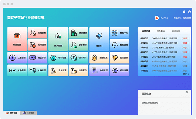美院子数字科技有限公司与固始泰康物业管理服务有限公司能够签约成功,也是泰康物业经过前后多番对比及试用后做出的慎重决定,通过使用软件大大减轻基层人员和管理层劳动强度;同时,软件后台有上百种报表类型可供查看,公司总部能够实时查看了解项目数据,更好地管理小区,从根本上实现智能收费管理。