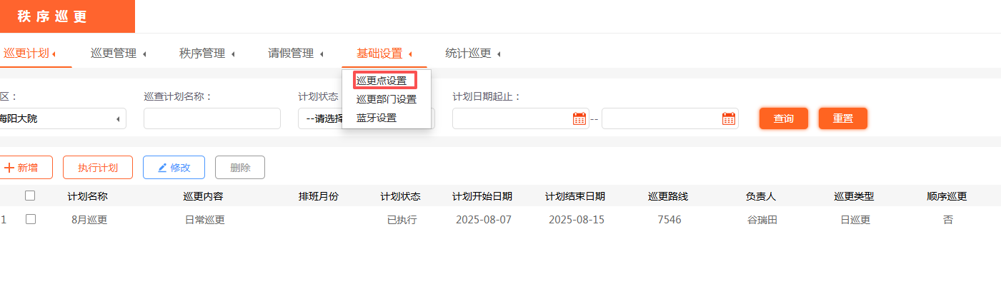 打开美院子物业收费系统,通过主界面进入秩序巡更模块。找到基础设置-巡更点设置,下载模板,把巡更点录入模板中,然后点击导入,导入巡更点,这样每个巡更点都会出现相应的二维码,