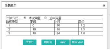 例如设置3个阶梯级别本次用量的阶梯单价: