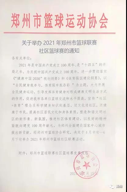 2021年郑州市篮球联赛社区篮球赛竞赛规程