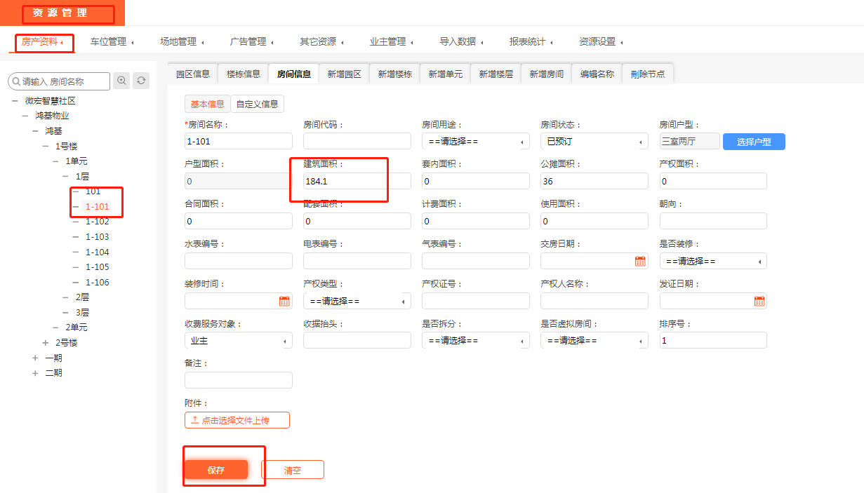 物业软件操作说明:如何修改房间面积?