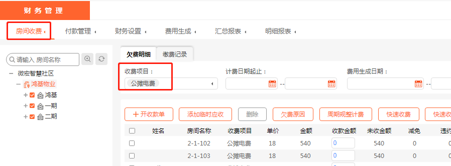 这样公摊电费就计算出来了并保存到美院子物业管理软件里了,直接收取公摊电费就可以了。
