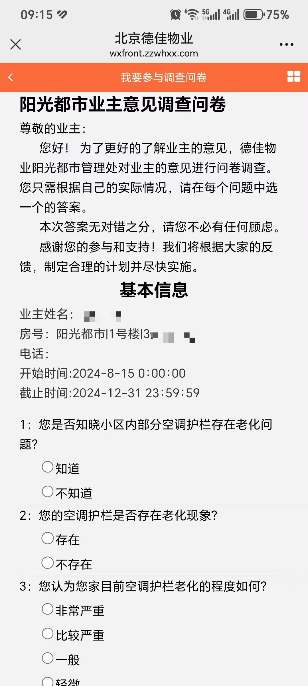 近日,北京德佳物业服务社区-阳光都市小区使用了美院子物业收费系统中的投票问卷管理功能,通过投票问卷功能,了解业主对物业管理服务的评价和期望,以便及时调整和改进服务。在一些需要业主参与决策的事项上,如小区改造、公共设施维修等,物业管理者可以通过投票问卷功能征求业主的意见和建议,以确保决策的合理性和民主性。