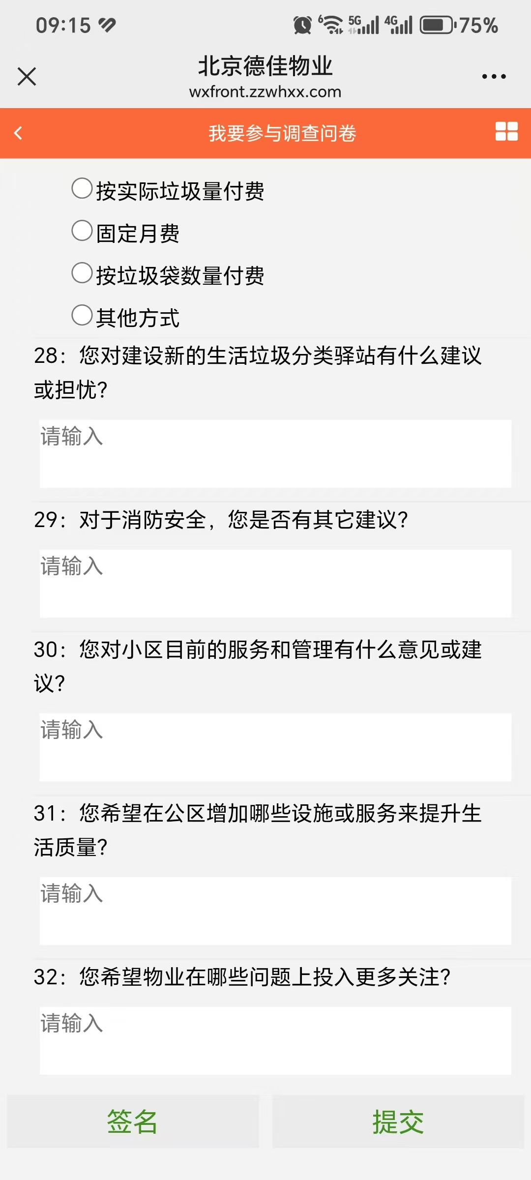 二、美院子物业收费系统支持业主自主填写问卷调查投票并签字,也支持物业人员上门让业主扫描二维码进行投票填写问卷调查。线上实现业主投票和调查问卷方便快捷。