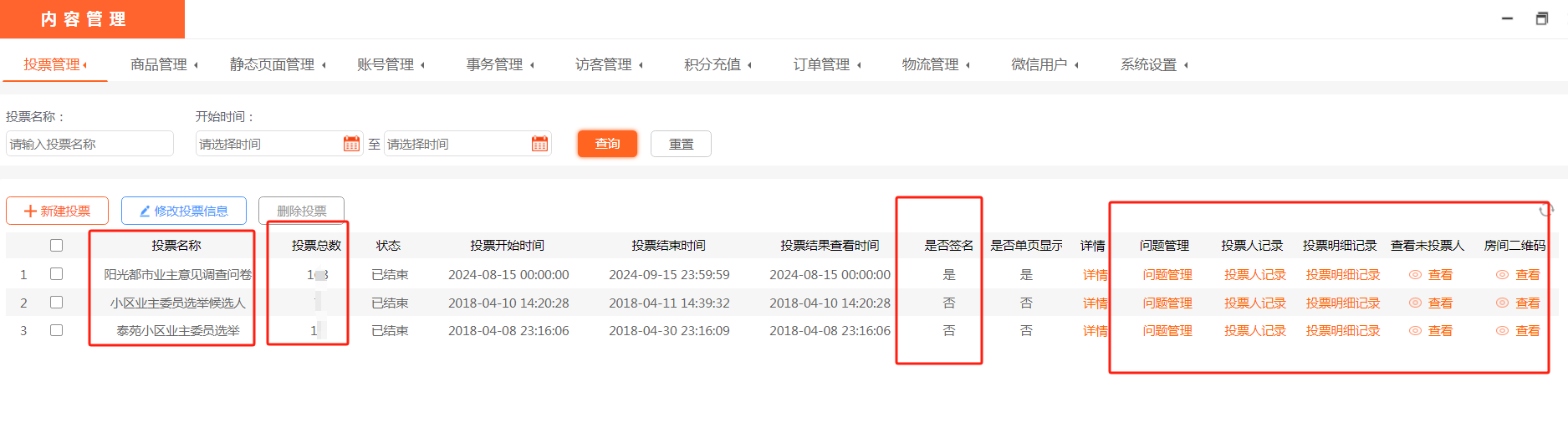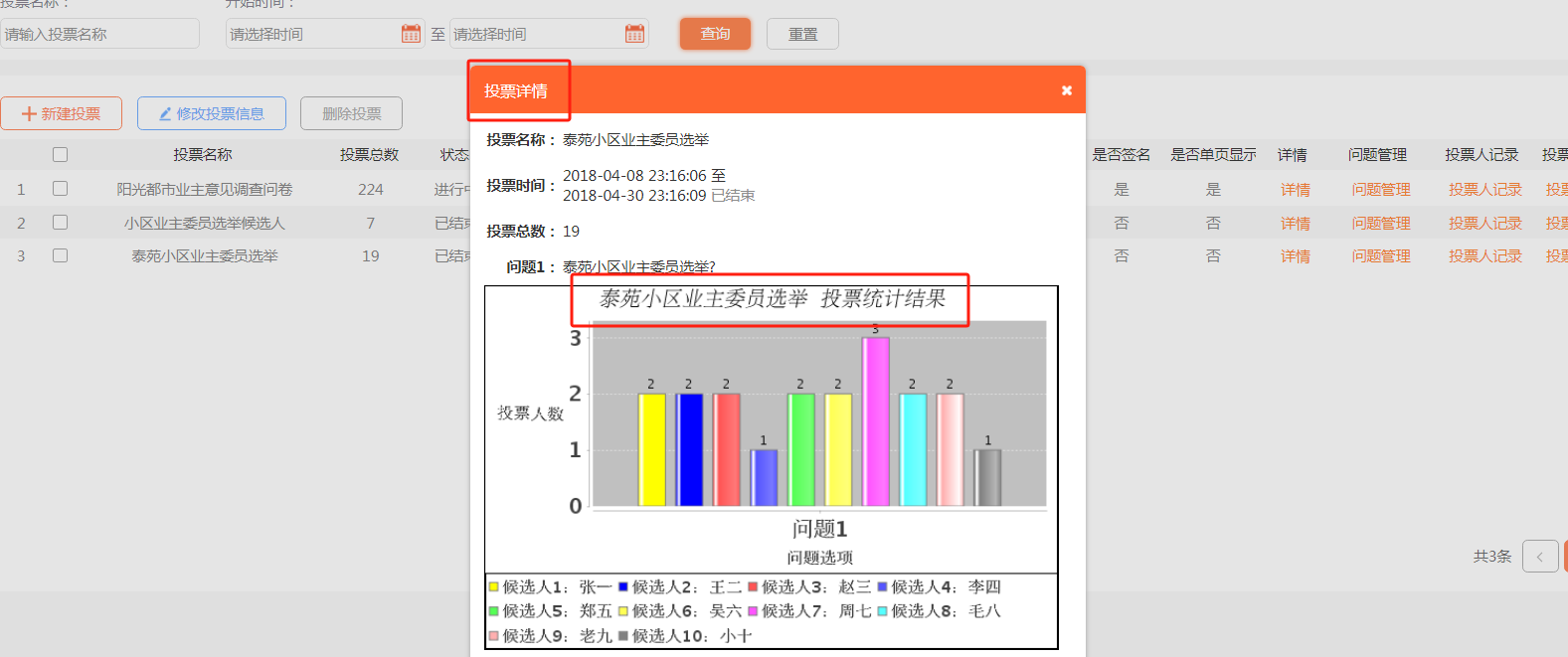四、美院子支持线上业主投票的实时统计,减少不必要的工作量、省时省力。