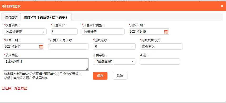 新房装修都会产生垃圾清运费。因生活水平、物价、人工费用不同,各地方对物业公司的装修垃圾清运费标准不一致。一般垃圾清运费是按面积来收费的,那物业如何收取垃圾清运费呢? 在系统里直接用公式计算垃圾清运费,这样垃圾清运费就添加到系统里了