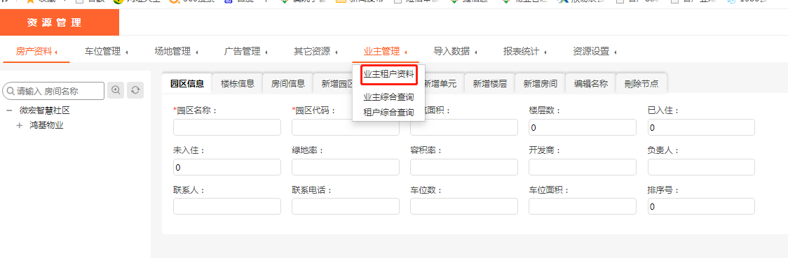 美院子智慧物业:如何添加租户资料? 1.打开美院子物业管理软件,资源管理模块-业主租户资料。租户资料页面,填写信息保存。