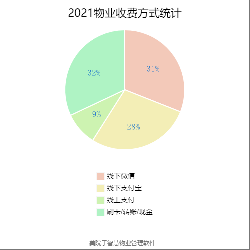 美院子智慧物业:2021年物业收费方式年度权威盘点 据美院子智慧物业统计,2021年度物业的收费方式中,线上缴费比例已经由2020年的占比7%增长至2021年的占比9%,同比增长28%,取得了显著的提升。