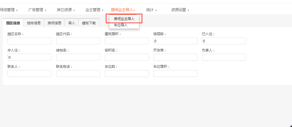 美院子物业软件:如何批量导入房产资料 第一步 点击导入数据,房间业主导入 第二步