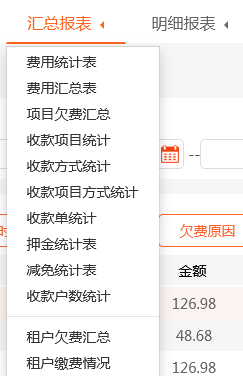 美院子智慧物业:如何查看报表? 直接点击需要查看的报表,进行汇总查看即可