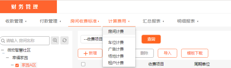 美院子智慧物业:如何对房间计算费用? 第一步 选择计算费用-房间收费 第二步 选择需要计费的房间 计费的科目 进行计费,房间可选择单个房间或多个房间同时计费。 第三步 点击开始计算 计费完成