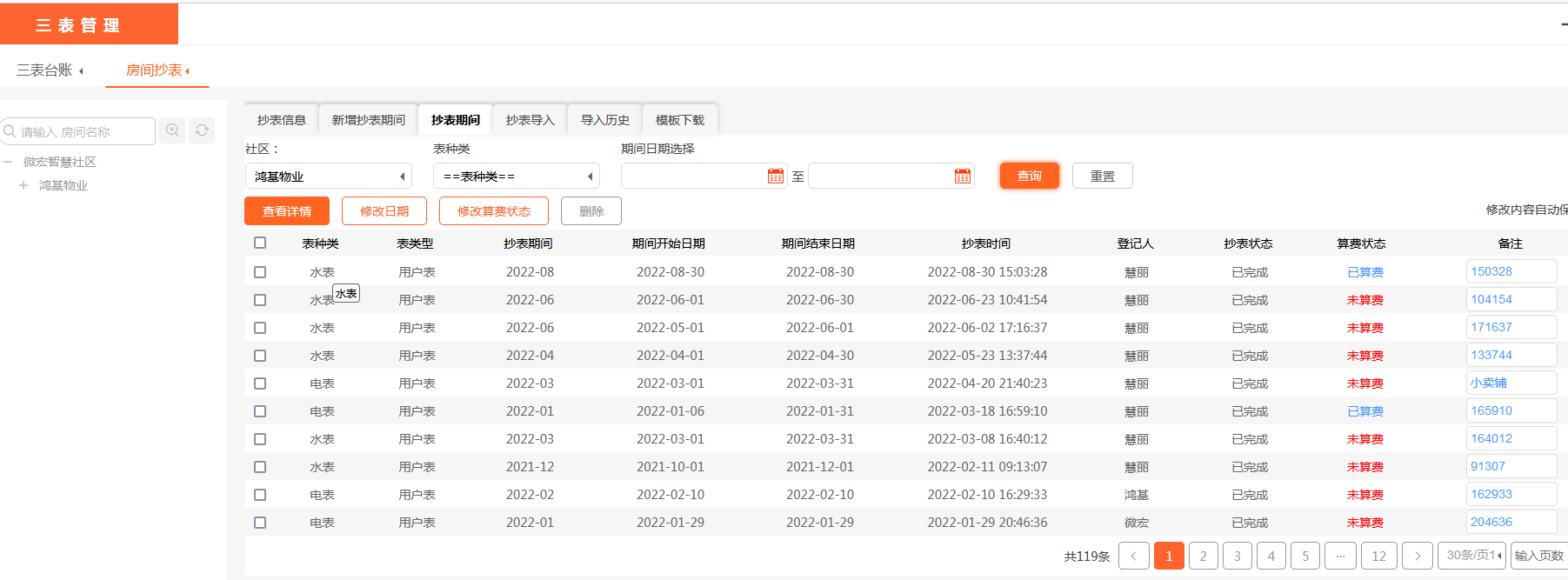 在使用美院子物业收费软件过程中,有物业公司需要抄水表和电表的情况。难免会遇到抄表日期忘记修改或者出现错误。博慧物业前台收费人员说:我这次抄表已经导入美院子物业收费软件,但是发现抄表期间填写错了,该怎么修改呢?
